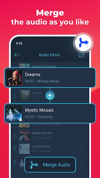 📱 Mp3 편집기 - 두 곡의 오디오를 믹싱하여 흥미로운 리믹스를 만듭니다. 원하는 대로 볼륨을 조절하세요. 트랙을 리믹스하고 오디오 편집의 무한한 가능성을 탐색해 보세요.