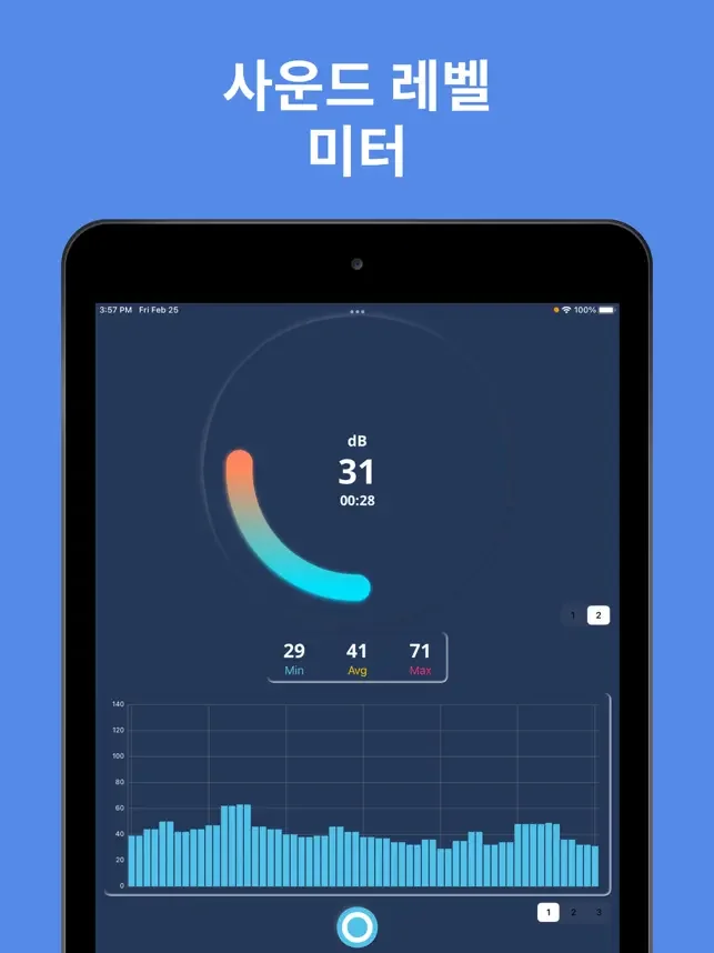 주변의 소음을 손쉽게 측정할 수 있는 도구, dB Meter Pro를 소개합니다. 이 앱은 강력한 성능과 직관적인 인터페이스를 통해 정밀한 소음 측정 경험을 제공합니다. 주변 환경의 소음을 감지하고, 데이터로 저장하며, 건강한 청력을 유지하는 데 도움을 줄 수 있는 도구입니다.
