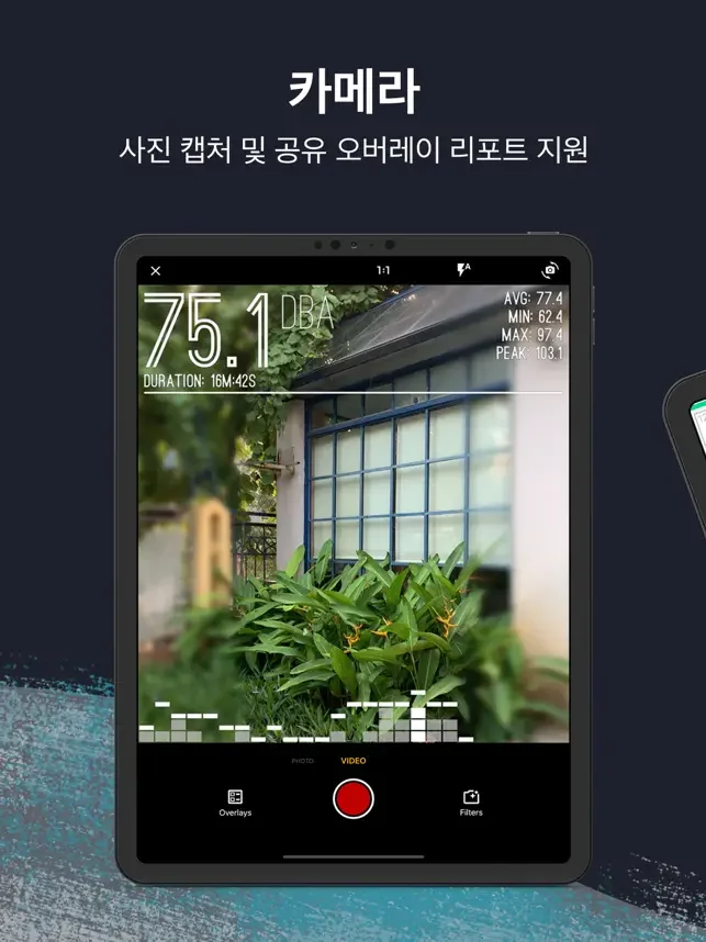 사진에 소음 수치를 오버레이하여 시각적으로 기록하거나, 시작 시 자동 측정을 활성화하여 한층 더 편리하게 사용할 수 있습니다. 이러한 다양한 기능이 조화를 이루어 소음 측정의 새로운 기준을 제시합니다.