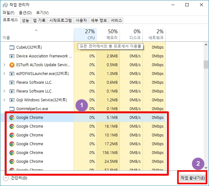 1. 구글 크롬 프로세스 강제종료 하기.