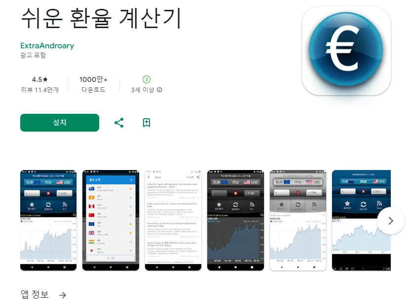 아래는 쉬운 환율 계산기 어플에 대한 스크린샷 정보입니다.