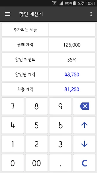 • 원래 가격과 할인 퍼센트를 입력하면 할인된 가격이 나옵니다.