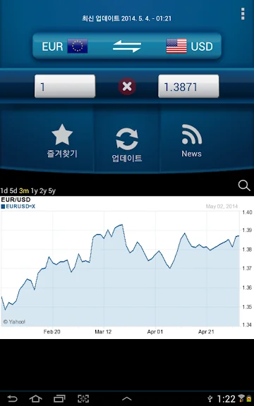 ▶ 다양한 기능들이 좋습니다. 추가로 나라별 환율 환산해서 보는 기능이 있으면 좋겠어요. 기존의 많은 계산기방식을 벗어나서...큰 차이는 없겠지만 원하는 금액을 적고 아래 키패드부분에 자주 쓰는 국가별로 버튼을 설정해서 여러개 있으면 바로바로 변환해서 볼 수 있도록 말이죠. 그리고 계산기타입으로 어플로 들어와서 보는것도 좋지만... 위젯으로 환율만 따로 볼 수 있으면 활용면에서 더 좋을것 같습니다.