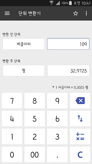 • 길이, 무게, 넓이, 부피, 시간, 온도, 압력, 속도, 연비, 데이터량을 지원합니다.