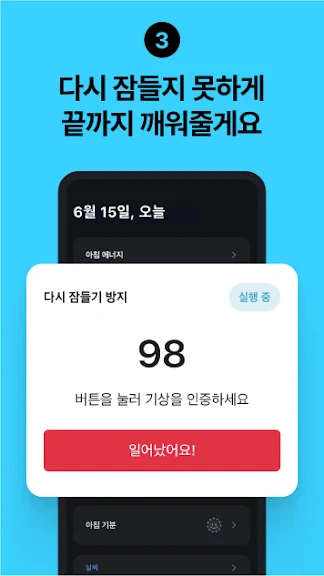 ▶ 이 앱 뭐죠 진짜. 평소에 12시에 일어나는 사람인데도 이 앱 한번이면 그냥 바로 깨버립니다. 부작용은 무조건 일어나게되서 짜증나지만~ 생활패턴이 훨씬 더 좋아지고, 일찍 일어날 수 있다는 것. 가끔씩 교회에 늦는데 너무 좋은 어플이에요ㅠ 일반 알람과는 다른? 진짜 늦잠자시는분들에게 추천드려요!