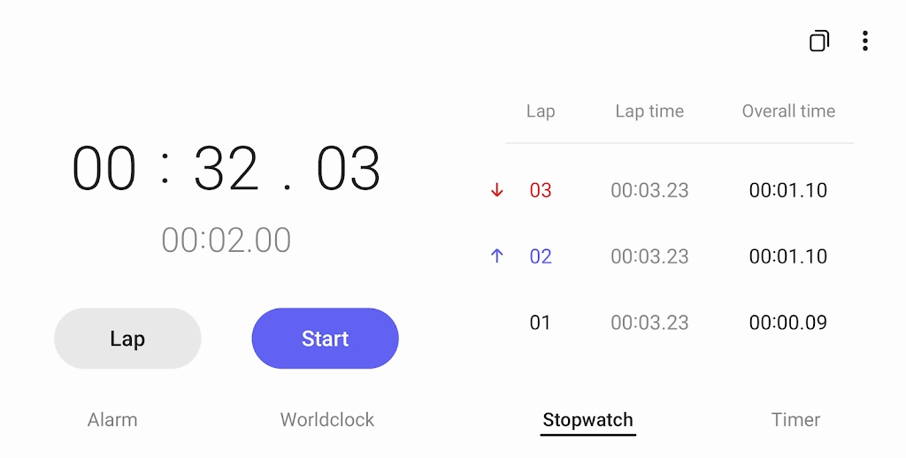 구간별 경과된 시간을 기록하고 기록된 값을 복사할 수 있습니다.
