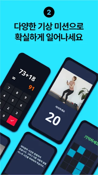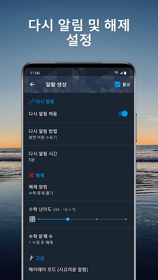 ♪ 알람을 다시 알리거나 해제하기 위해 연산 문제를 푸는 방법으로 잠에서 깰 수 있습니다.