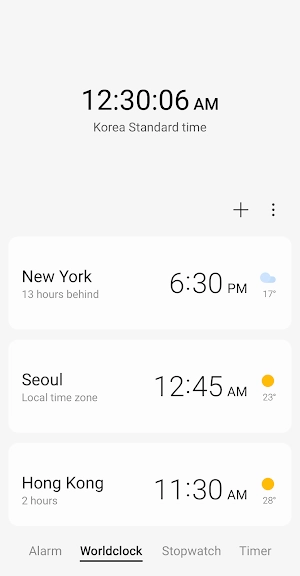 알람시계: 알람, 스톱워치, 타이머, 시계, 알림 어플에 대한 스크린샷 정보가 필요하시다면 아래 이미지를 참고하시기 바랍니다.