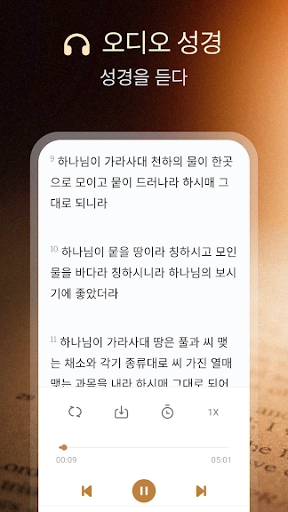 전체적인 오디오 성경 기능으로 손을 비우고 청취의 기쁨을 느껴보세요.