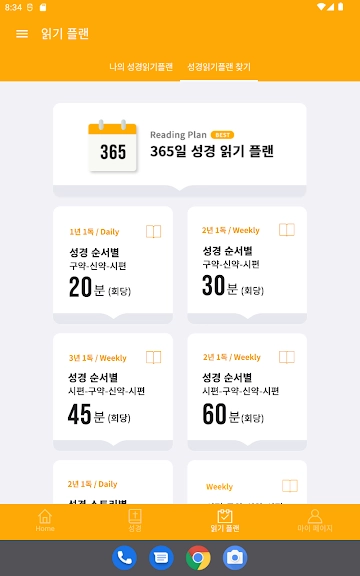 3) 20분, 30분, 45분, 60분 읽기 플랜을 선택하세요.