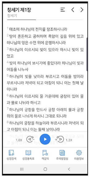 이렇게 해서 성경말씀 읽어주는 어플 추천 순위 2위 어플 소개를 마치도록 하겠습니다. 어플입니다. 도움이 되셨기를 바랍니다.