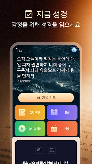 아래는 성경: 구절+오디오+기도 어플에 대한 스크린샷 정보입니다.