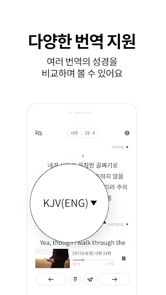 * 오디오 성경은 일부 번역본에서만 지원하며 다운로드가 불가함.