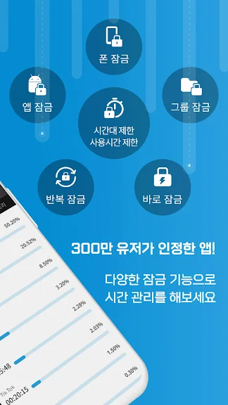 폰잠금, 앱잠금, 사용시간, 사용량 조회 기능으로 스마트폰 중독에서 벗어나 올바른 스마트폰 사용습관을 만들어주는 스마트폰 필수 앱입니다.