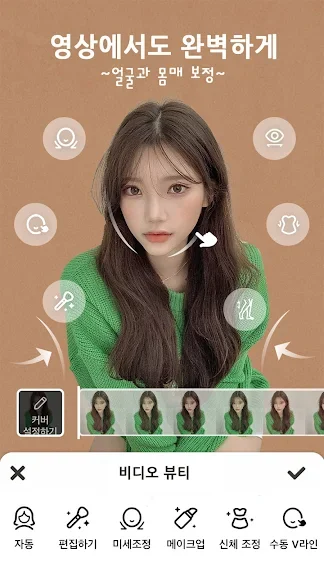 필터에서 몸매 보정까지. 동영상 예쁘게 보정한 후에도 화질 저하는 걱정하지 마세요. 화질 복구로 예쁘고 또렷한 동영상 편집이 가능해요.