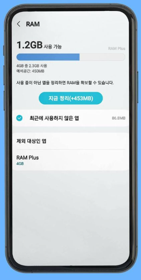 4) "지금정리"버튼을 눌러서 RAM을확보하세요.