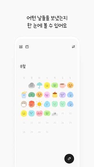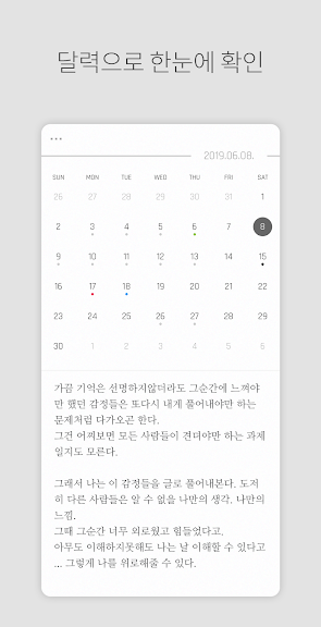 - 리스트형식이 아닌 달력으로 그날의 기분과 일기를 간단히 확인할 수 있습니다.