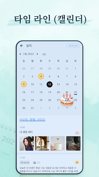 - 무료 동영상, 사진 일기를 제공합니다. 사진, 동영상을 추가하여 일기를 쓰세요. 이제 전통적인 일기와 작별을 고할 때입니다.