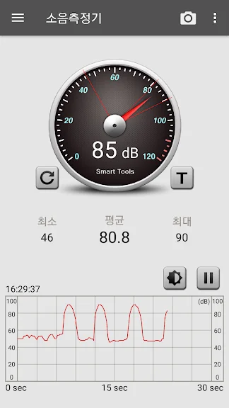 소음측정기 (Sound Meter) 어플에 대한 스크린샷 정보가 필요하시다면 아래 이미지를 참고하시기 바랍니다.