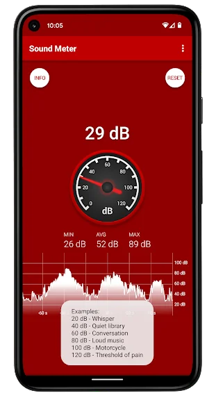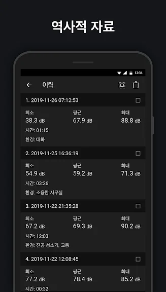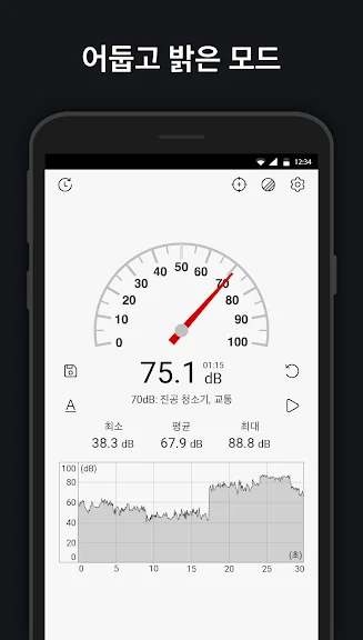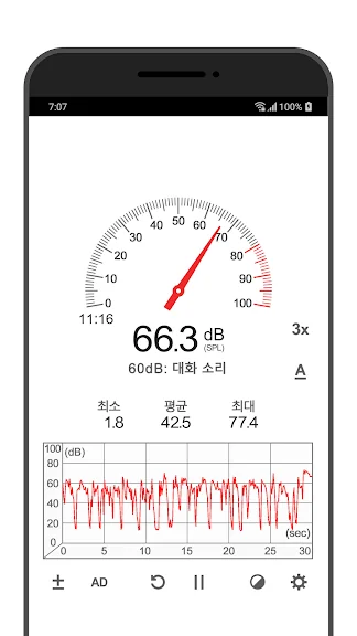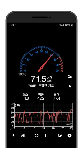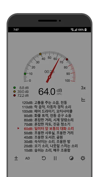 - 최소/최대/평균 데시벨을 보여줍니다