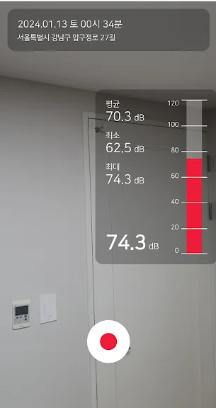 층간소음이 발생할때 앱을 켜서 동영상으로 녹화하고 자동 표시되는 데시벨로 피해 상황을 입증하세요. GPS 위치, 일자, 시간 자동 기록되어 편리해요.