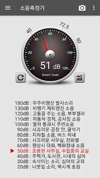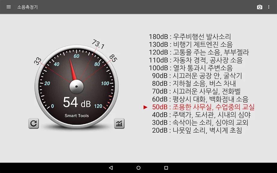 소음측정기 (Sound Meter) 어플에 대한 스크린샷 정보가 필요하시다면 아래 이미지를 참고하시기 바랍니다.