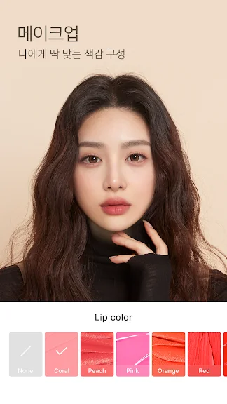- 메이크업 도구: 립스틱, 아이브로우, 아이섀도우, 블러셔, 헤어 염색 등 여러분의 룩을 향상시켜줄 자연스럽고 스타일리시한 메이크업을 적용할 수 있습니다.