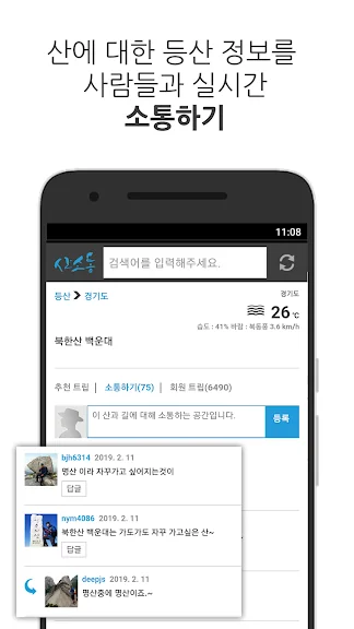 등산에 관한 질문을 하고 소통하며 등산친구를 만들어보세요.