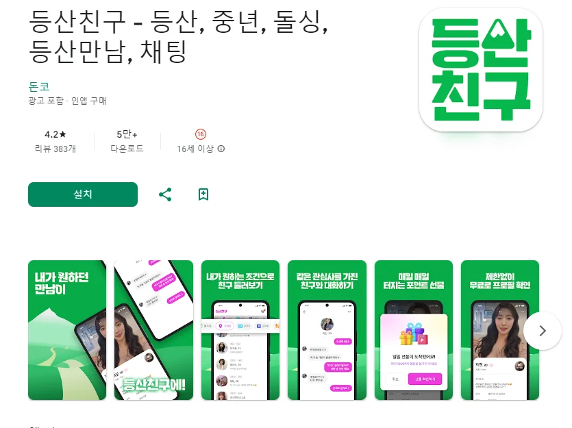 1) 등산친구 - 등산, 중년, 돌싱, 등산만남, 채팅 어플 소개