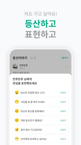 - 나에게 딱 맞는 등산 경험을 공유한 사용자에게 `좋아요`를 표현해봐요