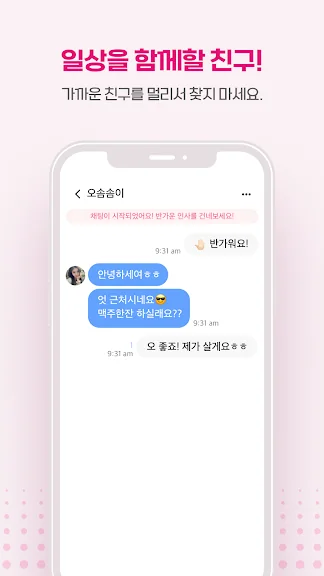 하루 일과를 마무리하고 집 가는 길 실시간 위치 기반 서비스로 내 근처의 동네친구를 만날 수 있어요.