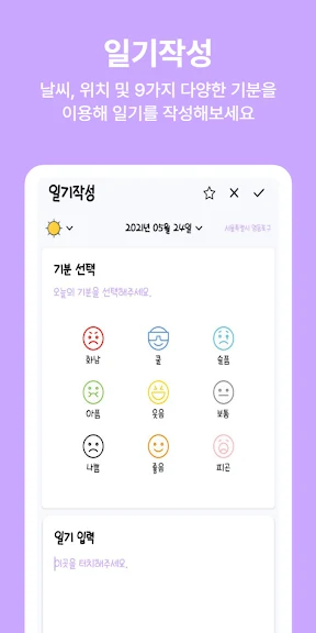 - 사진과 함께 일기를 작성할 수 있습니다.