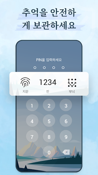 - 지문을 이용한 일기 잠금을 지원합니다. 지문을 통하여 몇 초 안에 일기를 잠금 해제합니다. 일기의 암호를 잊어버릴 염려가 없습니다.