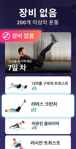 규칙적인 운동으로 주요 근육을 단련해 멋진 몸매를 만들어보세요. 헬스장 또는 값비싼 피트니스 트레이너가 필요 없습니다. 집에서 하는 간단한 운동으로 체중을 감량하세요!