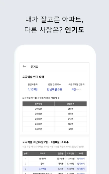 ▶ 실시간으로 가장 인기 있는 단지와 지역을 알려주는 [랭킹]