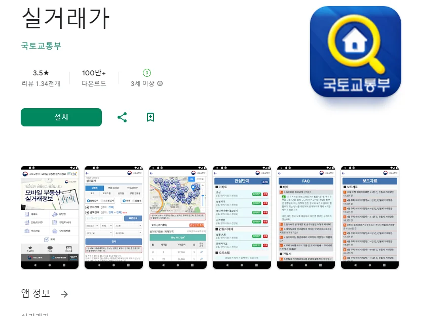 실거래가 어플에 대한 스크린샷 정보가 필요하시다면 아래 이미지를 참고하시기 바랍니다.