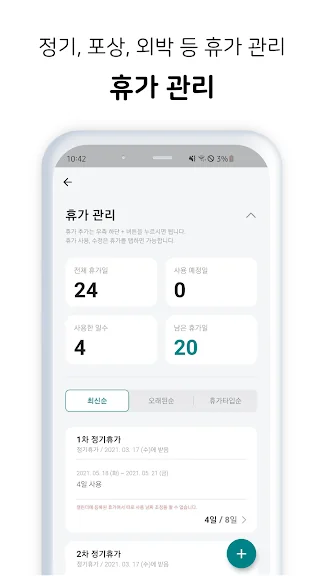 : 정기, 포상 등 휴가 쉽게 관리가 가능해요!