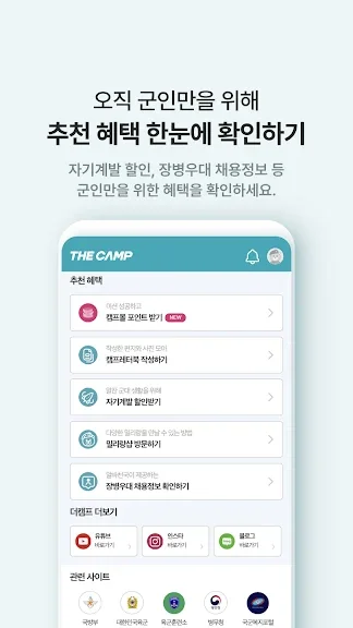 대국민 국군 소통 서비스 더캠프(THE CAMP) 어플에 대한 스크린샷 정보가 필요하시다면 아래 이미지를 참고하시기 바랍니다.