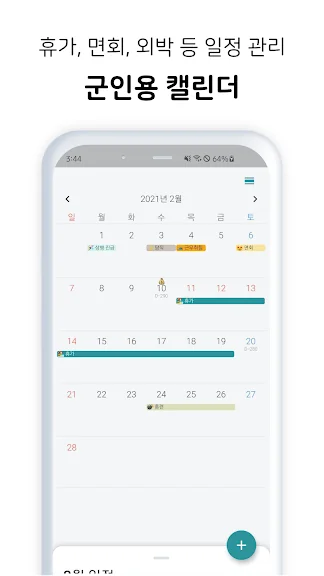 : 휴가, 면회, 외박 등 군 관련 일정 관리가 쉽게 가능해요!