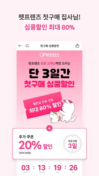 - 펫프렌즈가 처음이라면 강아지쇼핑, 고양이쇼핑을 위한 첫 구매 지원쿠폰 5,000원 지급!