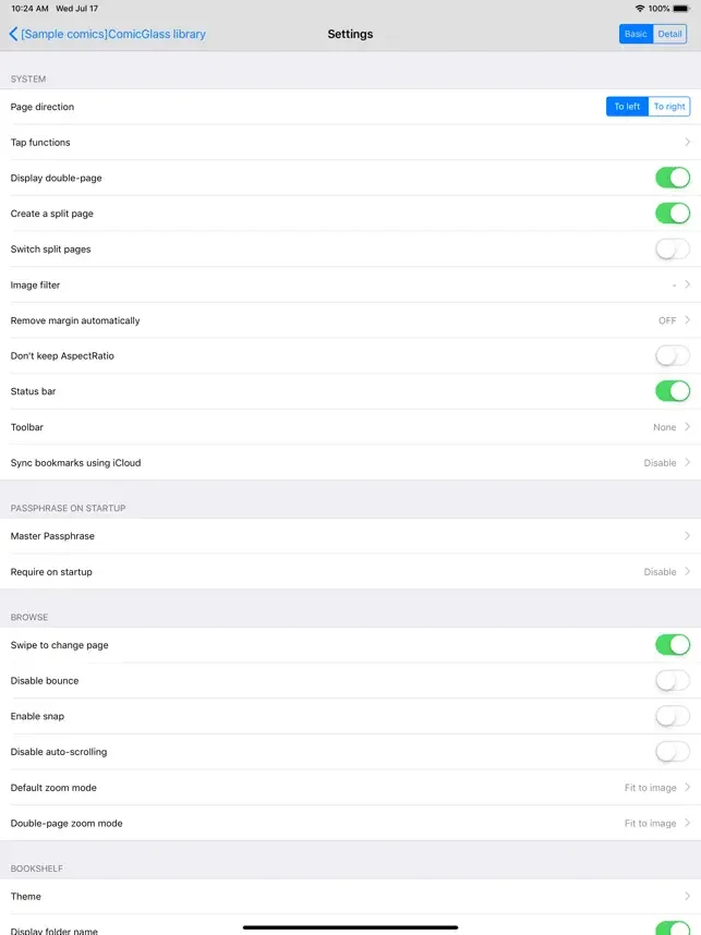 - iCloud 동기화 : 읽은 파일의 정보 (읽은 위치) 를 동기화하고 다른 기기 (같은 iCloud 계정으로 로그인 된) 에서 동일한 파일을 오픈하면 이어서 볼 수 있습니다. (iOS 11 이상)