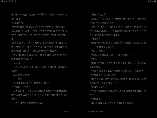 - 가로 모드에서 두 페이지 기능 : 가로 회전 시 두페이지, 세로 회전 시 한페이지로 자동 변경되는 기능, 아이패드 전용 기능