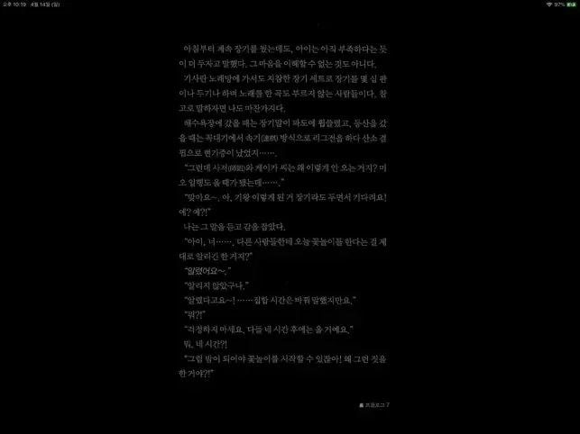 - 세로 스크롤 모드(=웹툰 모드) : 웹툰 처럼 세로로 스크롤 기능, 일부 옵션들은 고정 및 미적용 됩니다. (iOS 13 +)