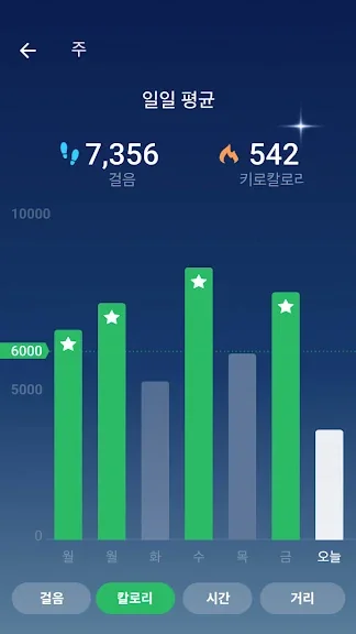 일일 걸음 목표를 세울 수 있습니다. 목표를 2일 이상 연속 달성하면 연속 기록이 시작됩니다. 연속 기록 통계 차트를 쉽게 확인해 동기를 부여 할 수 있습니다.