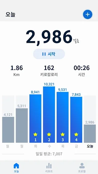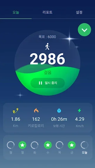 보고서 그래프는 가장 혁신적인 그래프로서 걷기 데이터를 추적 할 수 있도록 모바일 장치 용으로 특별히 설계되었습니다. 지난 24시간, 주간 및 월간 통계를 그래프로 확인할 수 있습니다.