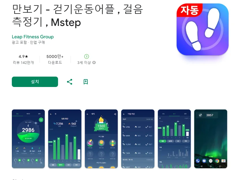 아래는 만보기 어플 – 만보 걷기 앱 및 걸음수 측정기 어플에 대한 스크린샷 정보입니다.