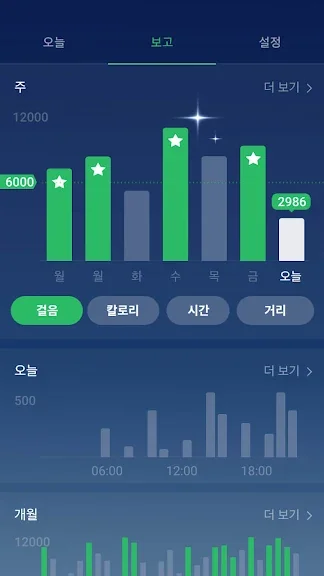 보고서 그래프는 가장 혁신적인 그래프로서 걷기 데이터를 추적 할 수 있도록 모바일 장치 용으로 특별히 설계되었습니다. 주간 및 월간 통계를 그래프로 확인할 수 있습니다.