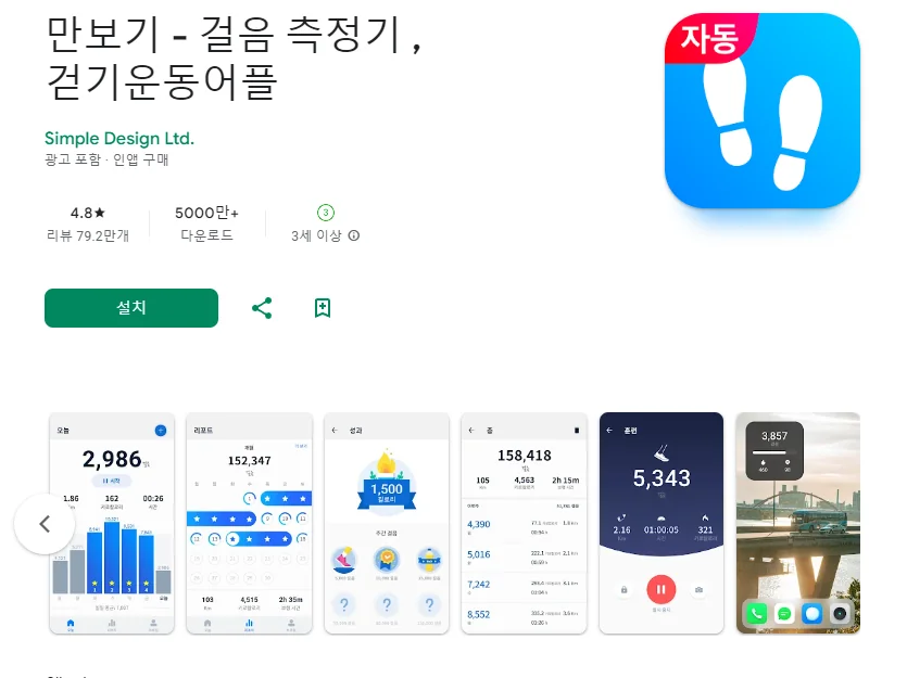 만보기 어플 – 만보 걷기 앱 및 걸음수 측정기 어플에 대한 스크린샷 정보가 필요하시다면 아래 이미지를 참고하시기 바랍니다.