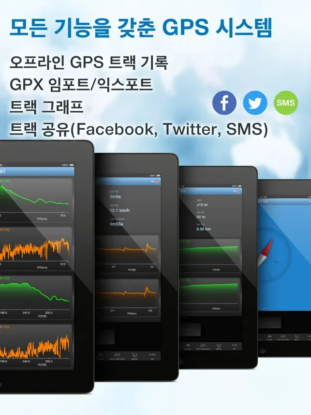 - 운동한 트랙이 포함된 사진과 SNS 공유 기능 (페이스북, 인스타 피드 등)