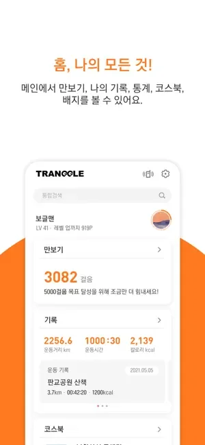 - 190만명의 트랭글 회원이 추천하는 운동(여행) 코스와 따라가기 기능